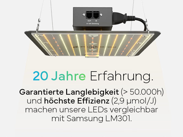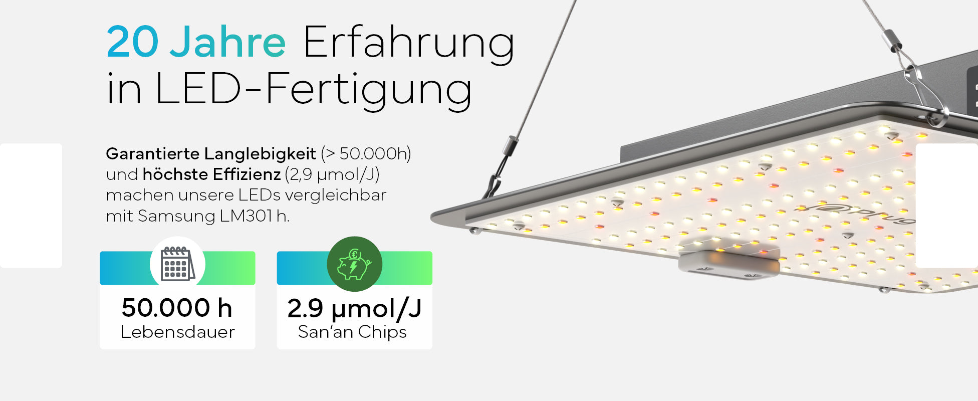 Effiziente San’an LEDs mit 2.9 µmol/J und mindestens 50.000h Lebensdauer